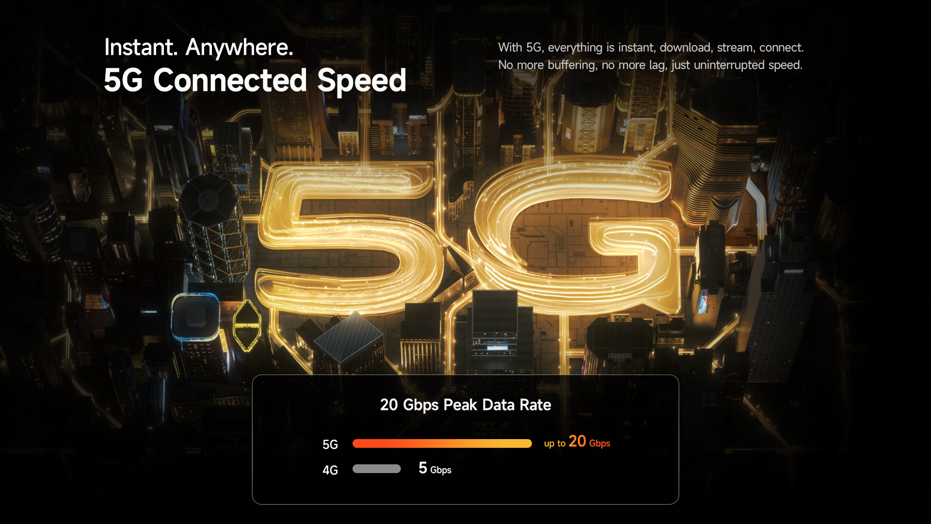Con il 5G, tutto è istantaneo: download, streaming e connessioni. Nessun caricamento o ritardo, solo velocità ininterrotta.