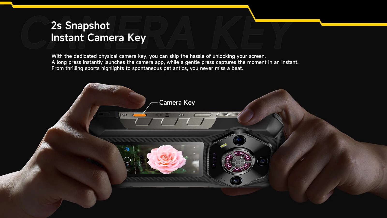 Equipado com uma bateria de 12800mAh de alta capacidade, o Armor 30 Pro oferece suporte de energia duradouro, permitindo que você jogue ou transmita vídeos sem interrupções. Seja em atividades ao ar livre, viagens ou para evitar a preocupação com recargas frequentes, o Armor 30 Pro resolve tudo com facilidade. Sua bateria mantém o desempenho até mesmo em temperaturas extremamente baixas. Utilizando uma tecnologia mais segura e maior densidade energética, oferece uma vida útil mais longa em comparação com as baterias de lítio tradicionais, funcionando de maneira estável até temperaturas tão baixas quanto -30°C.
