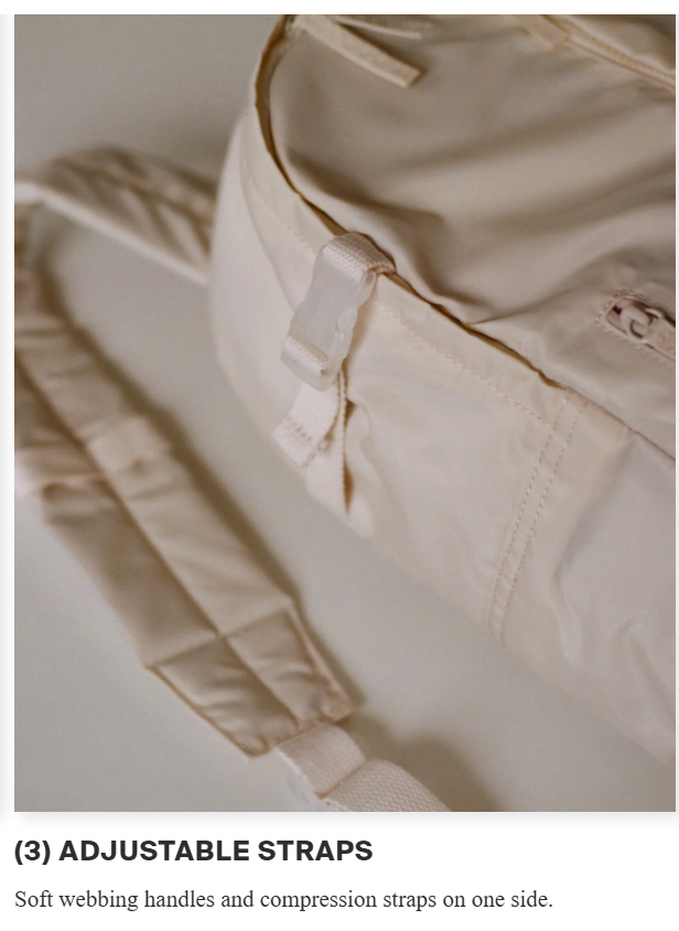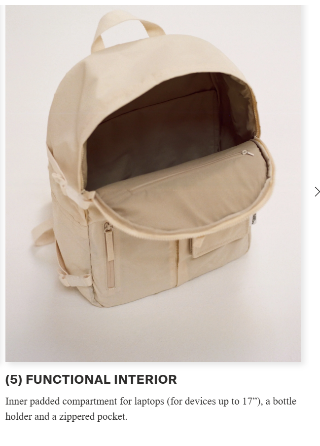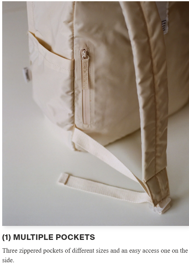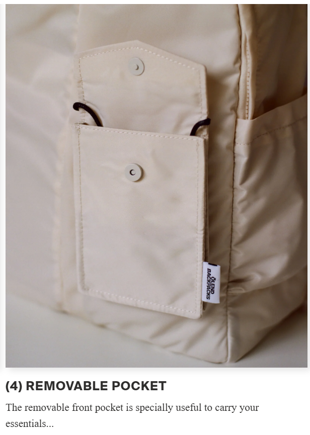 Comfortable and light backpack equipped with pockets and compartiments to keep everything organized. Includes a removable pocket that can turn into a little bag.