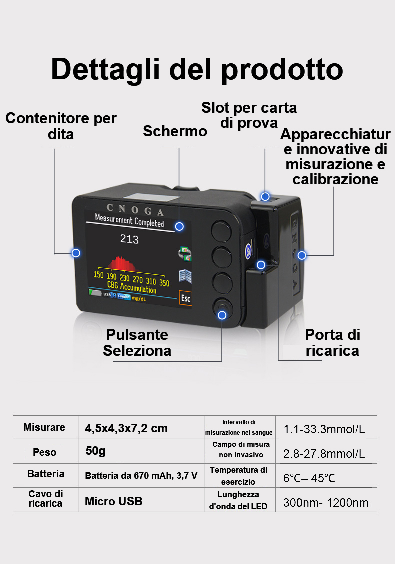 Saturimetro non invasivo per la glicemia CNOGA
